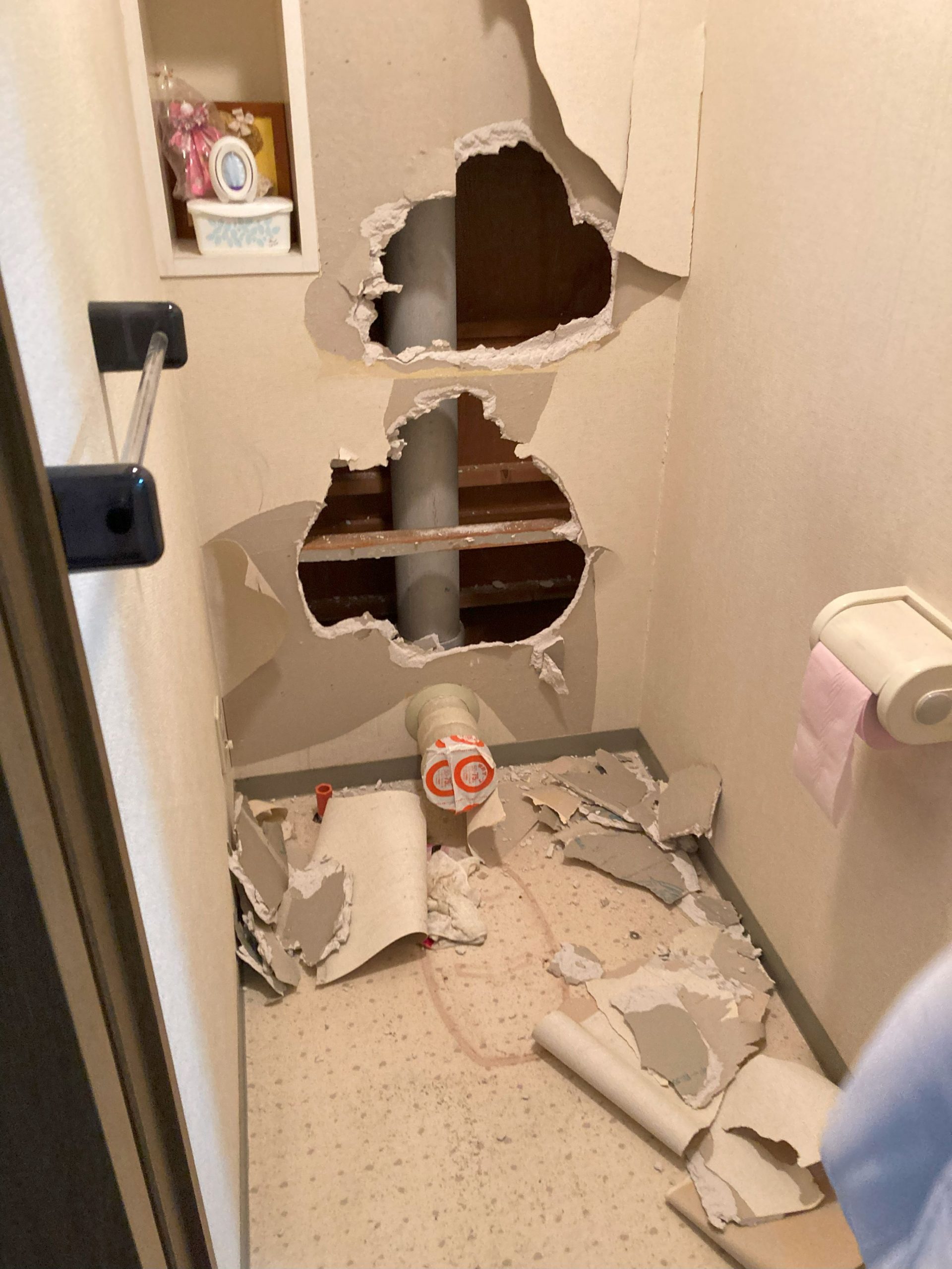トイレは他の階で水漏れが発生したことがあったため、壁を壊して