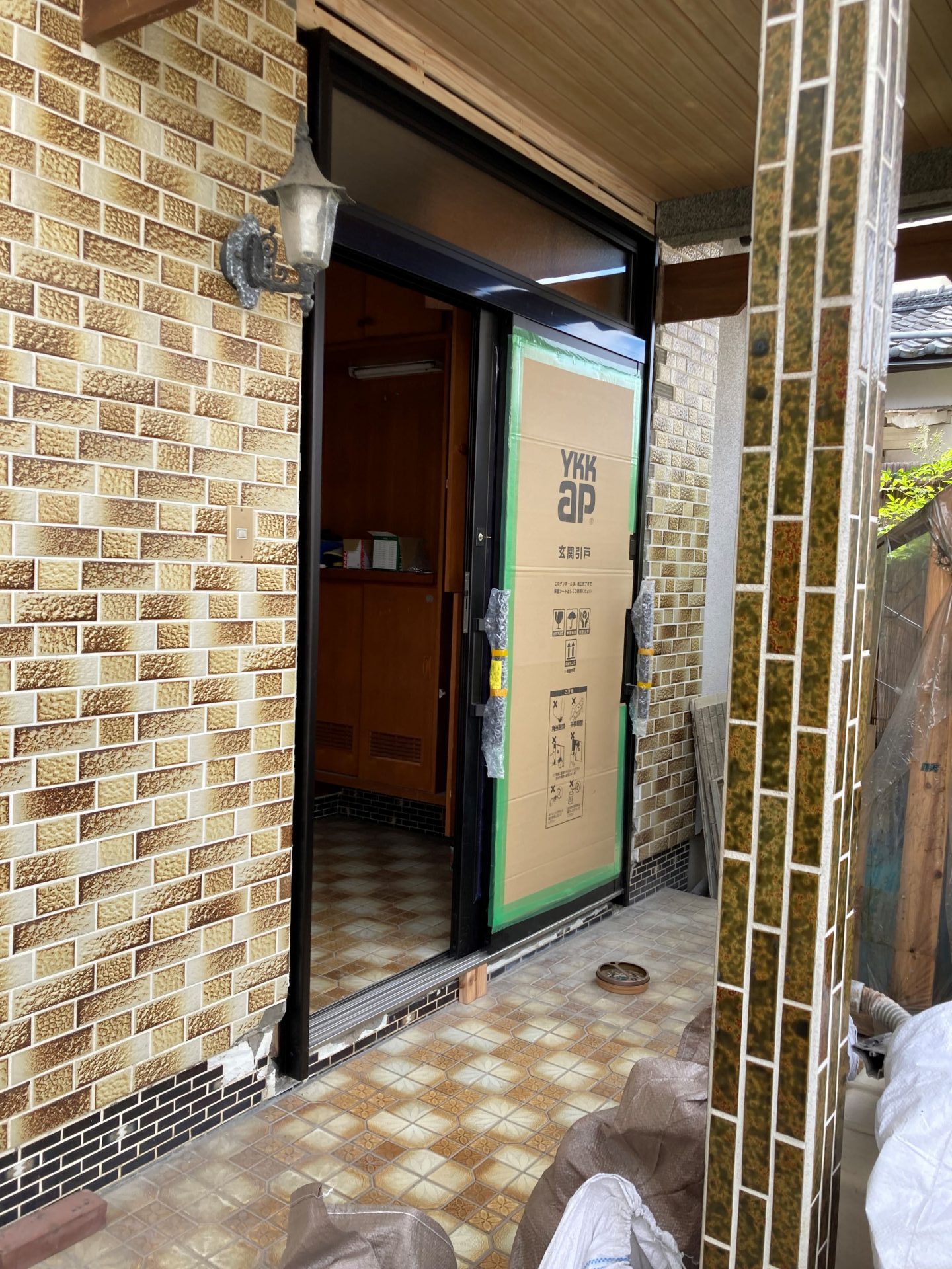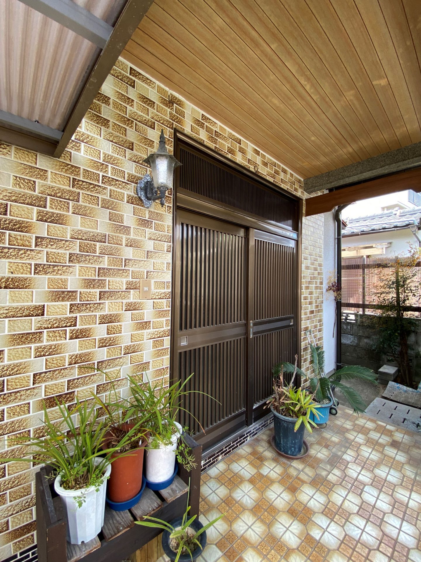 老朽化していた玄関ドアもYKKの頑丈な引き違い戸に変えて、安心です。