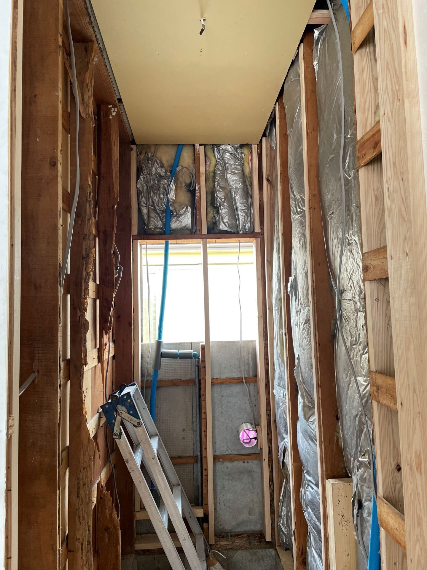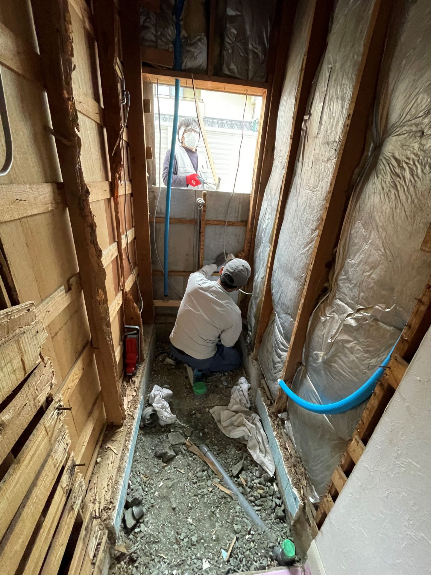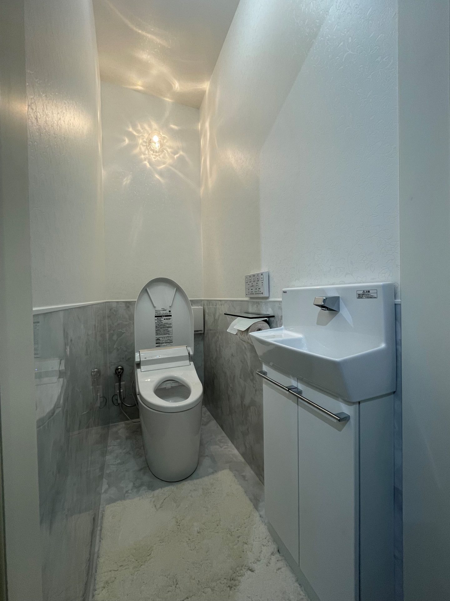 内装にもこだわって腰壁を作り、上と下で壁紙の色も変えています。