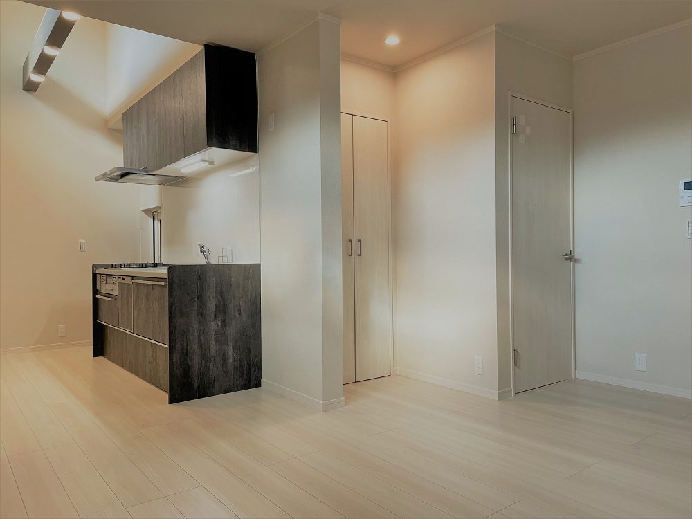 居間とキッチンの間の大きな段差は解消して、吹き抜けのある開放的なLDKになりました。
