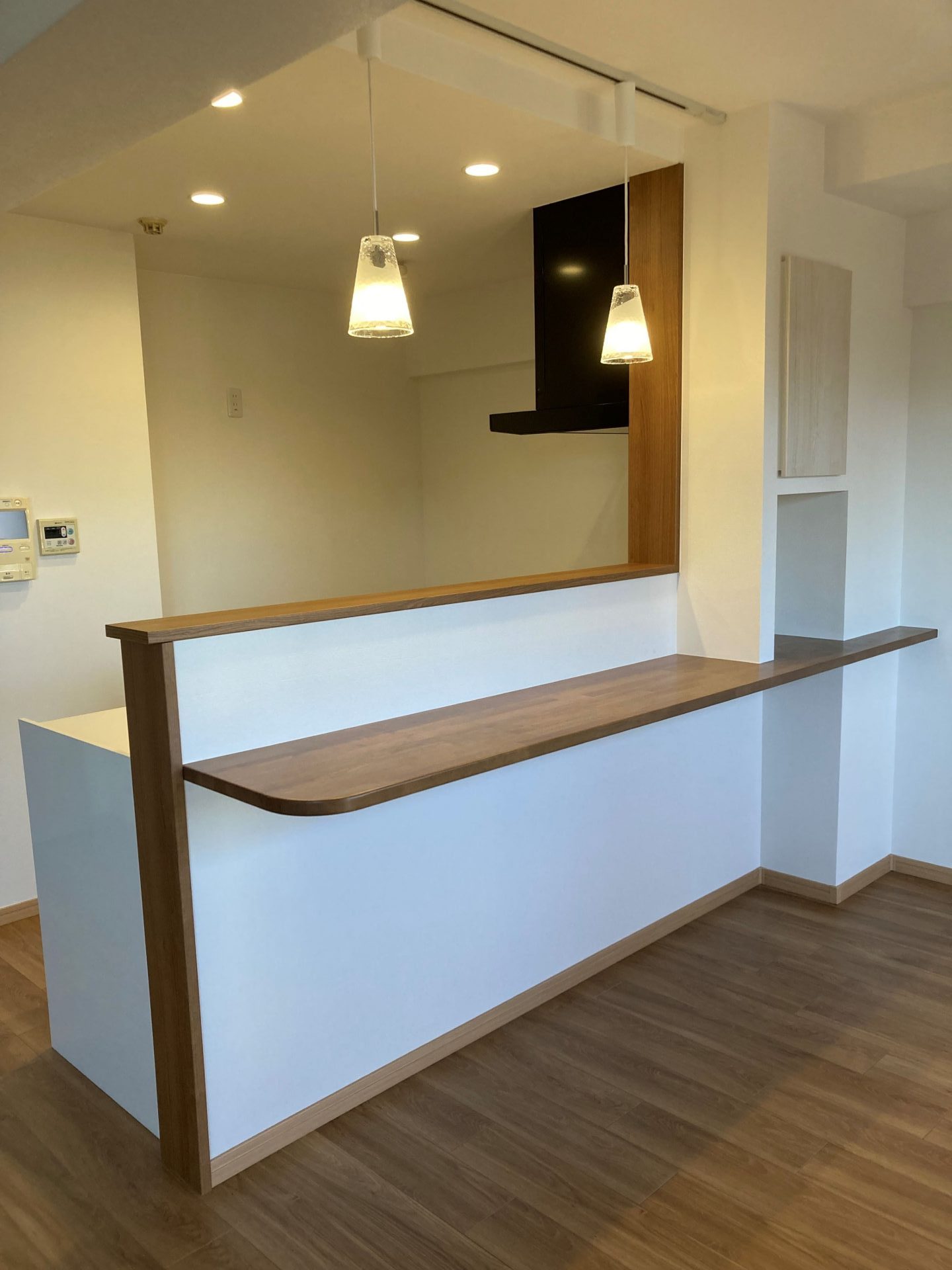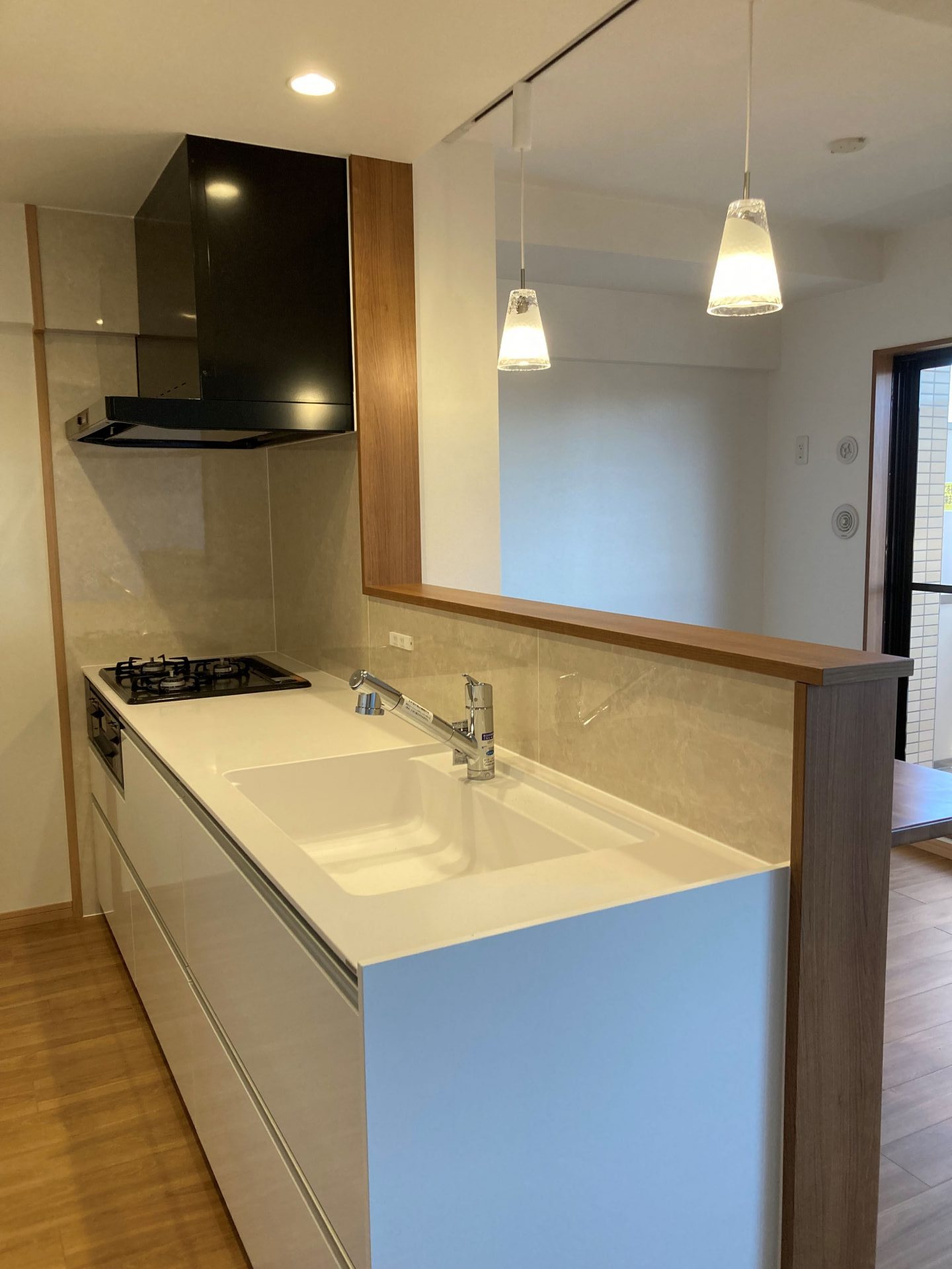 床は以前より明るい色で、壁紙はホワイトで統一することによって明るい空間となりました!