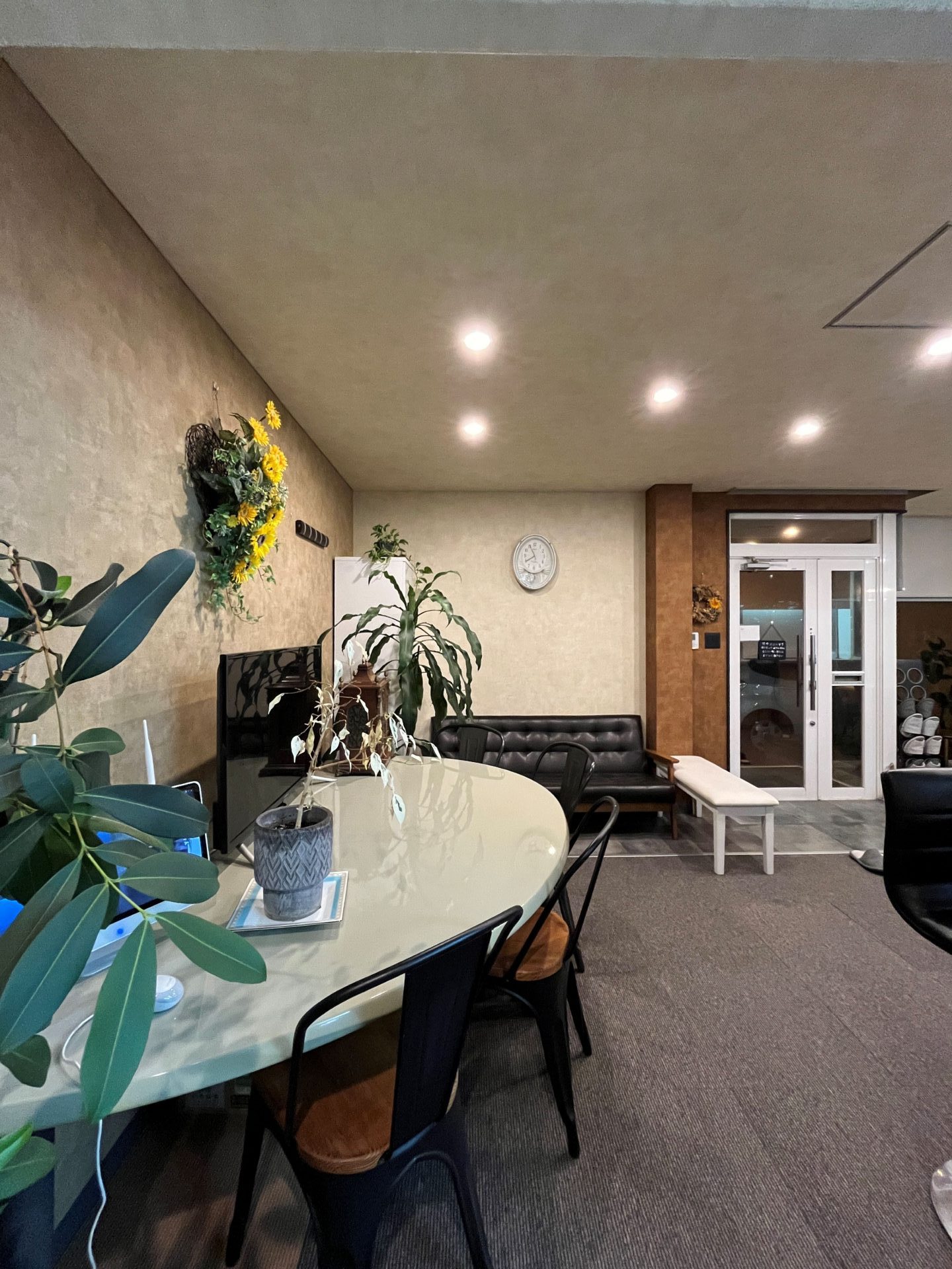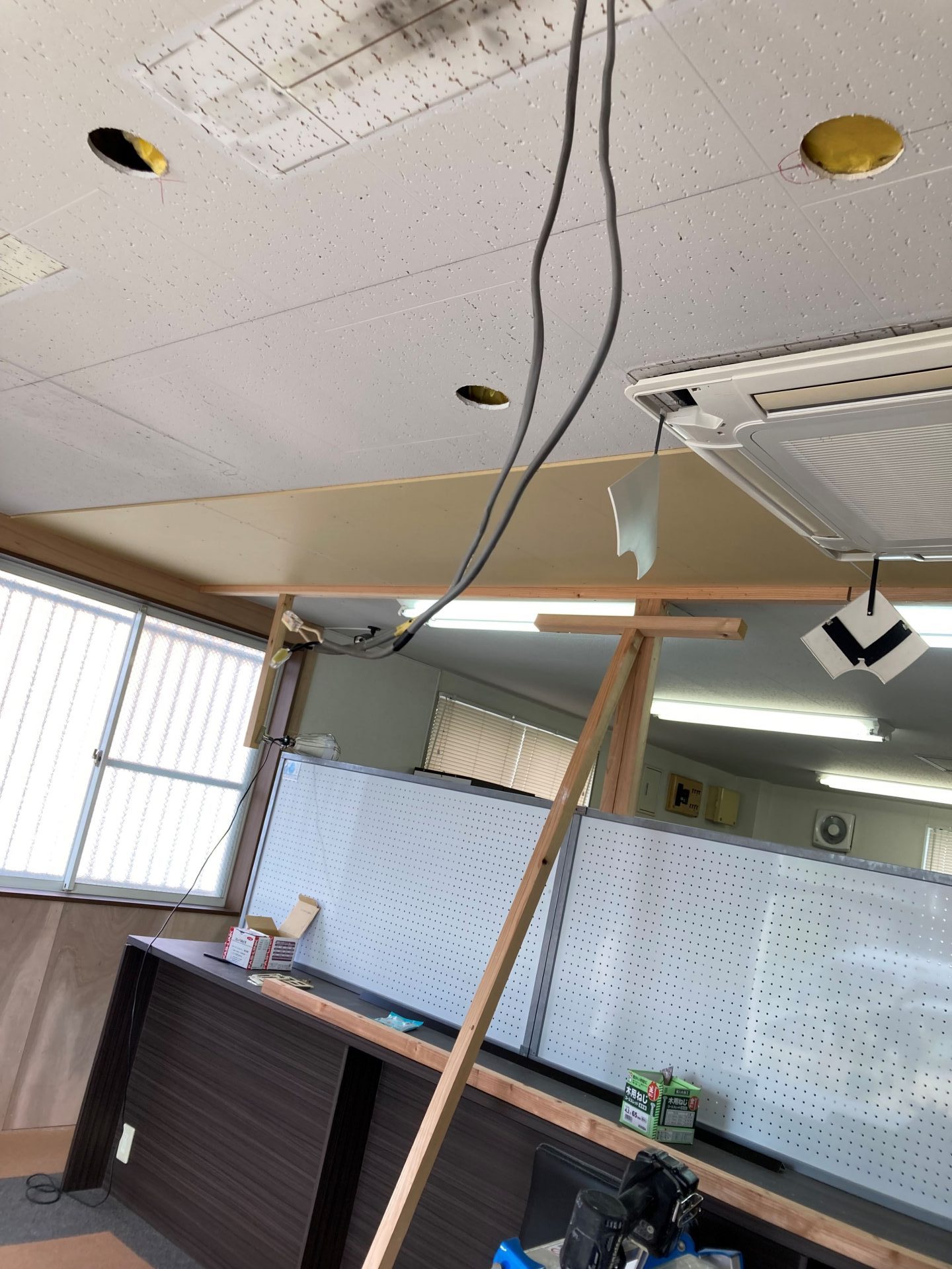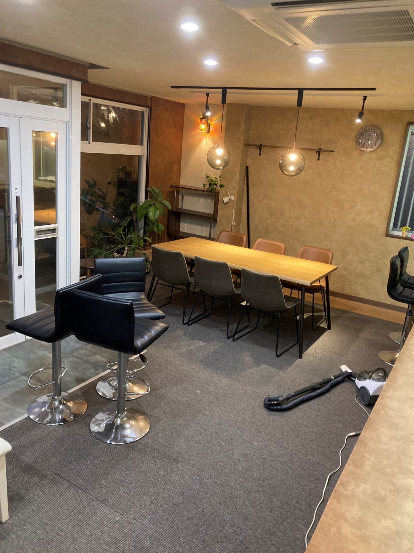 以前から、蛍光灯でザ・事務所という雰囲気からカフェ風の雰囲気に変えたいと思っておりましたので