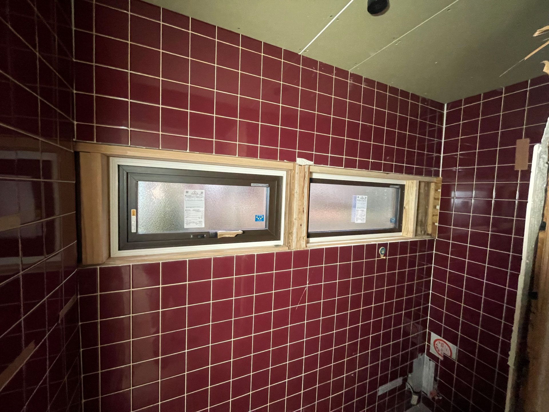 トイレの窓、浴室の窓も丸ごと取り替えでの工事です。