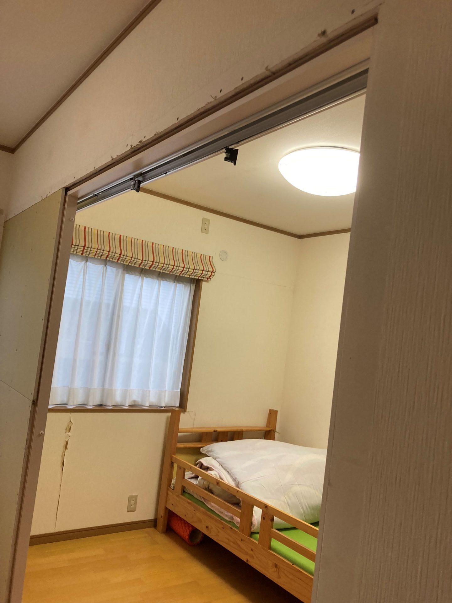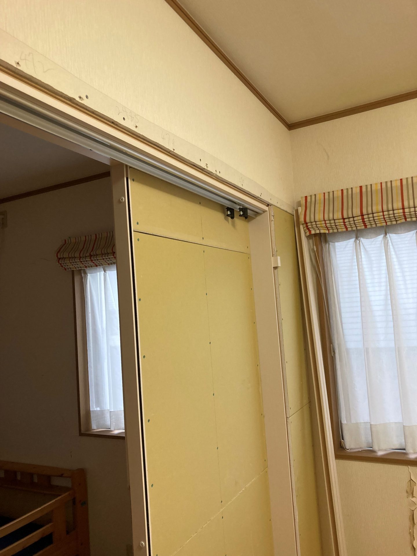 壁で完全に間仕切ると狭いので、お友達が来た時だけ仕切れるよう、片引き戸を取り付けることにしました!