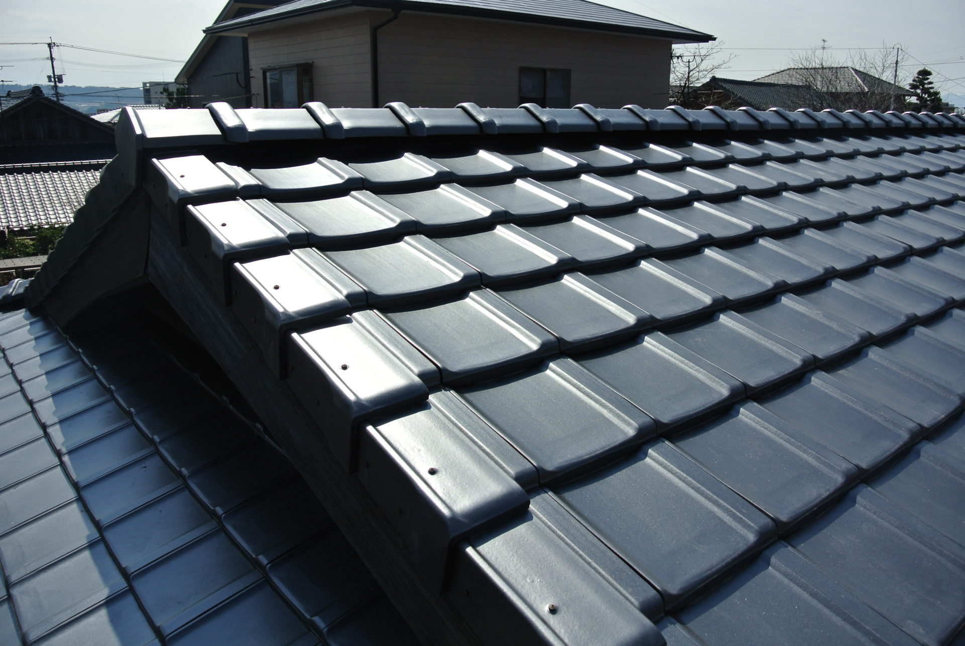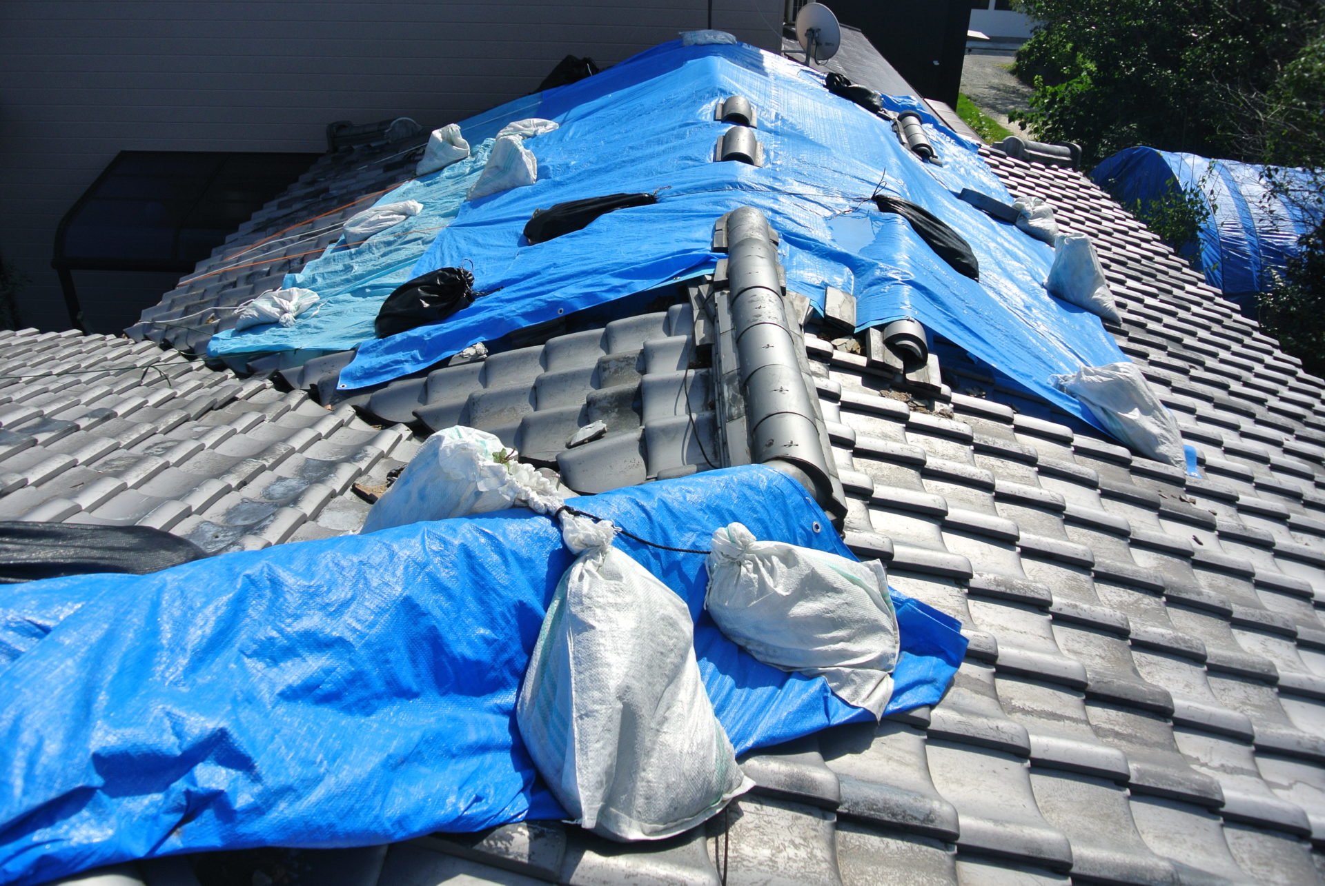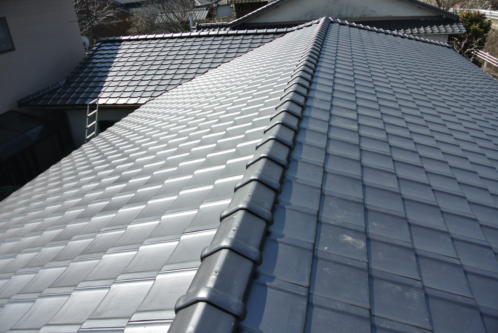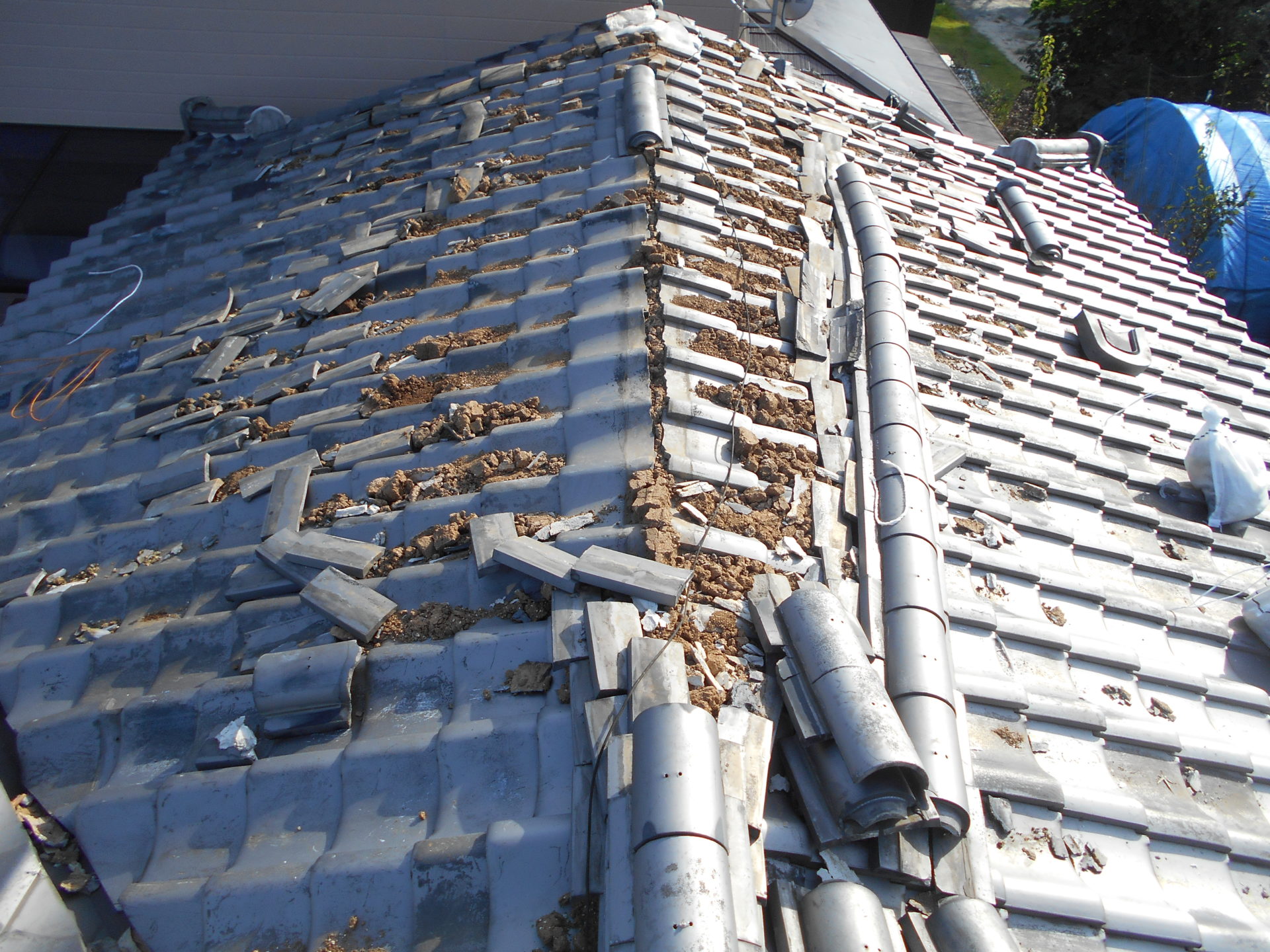 熊本県菊池郡大津町のリフォーム工事を紹介します。 木造・平屋のお家です。 屋根の瓦は釘打ちしていないため棟の瓦は落ち、平瓦もずれていました。 今後の災害に備えて石州の防災瓦へ葺き替えを行っていきます。 棟の瓦は補強の金物を入れて、平瓦同様すべてビスで留めていきます。 今回は下地の野地板の傷みが全体的にひどかったので補強も含めて、上から新しい野地板を重ねて張っていきます。 改修前 (Before) 改修工事中 改修後 (After)
