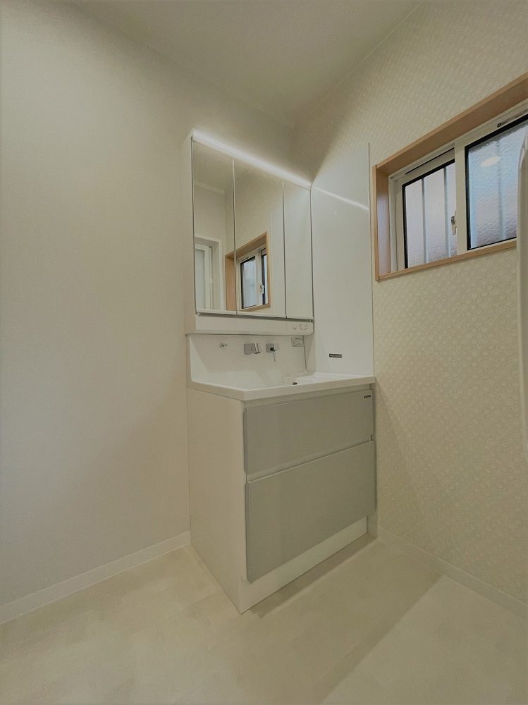 洗濯機を階段下に配置したので、洗面室を広く活用できそうです。