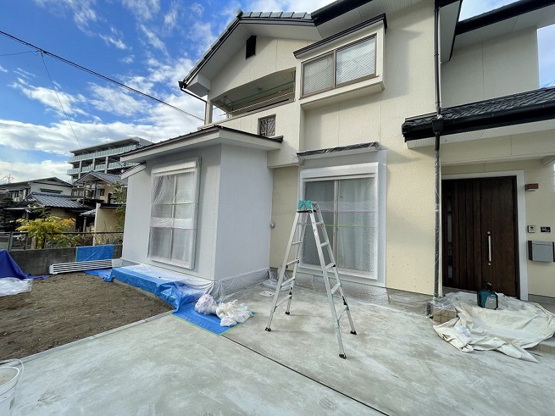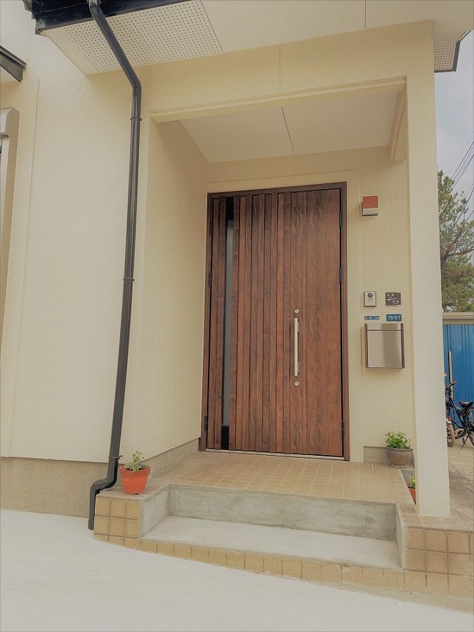 一部お庭を削るかたちで、駐車場も拡張し、玄関ドアも入れ替えたので、外観もまるで新築のようですね(^^♪