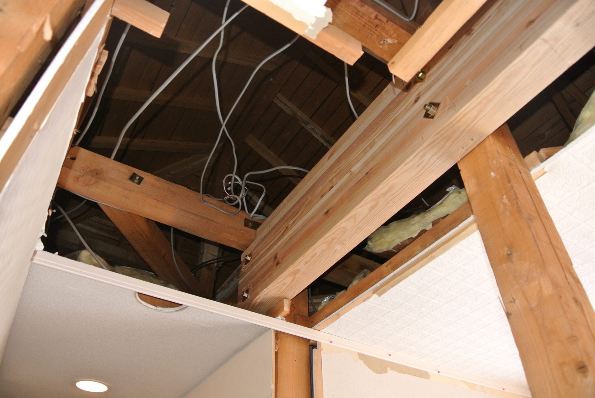 寝室への入り口も天井に梁の補強を入れたので、壁を撤去することができました♪