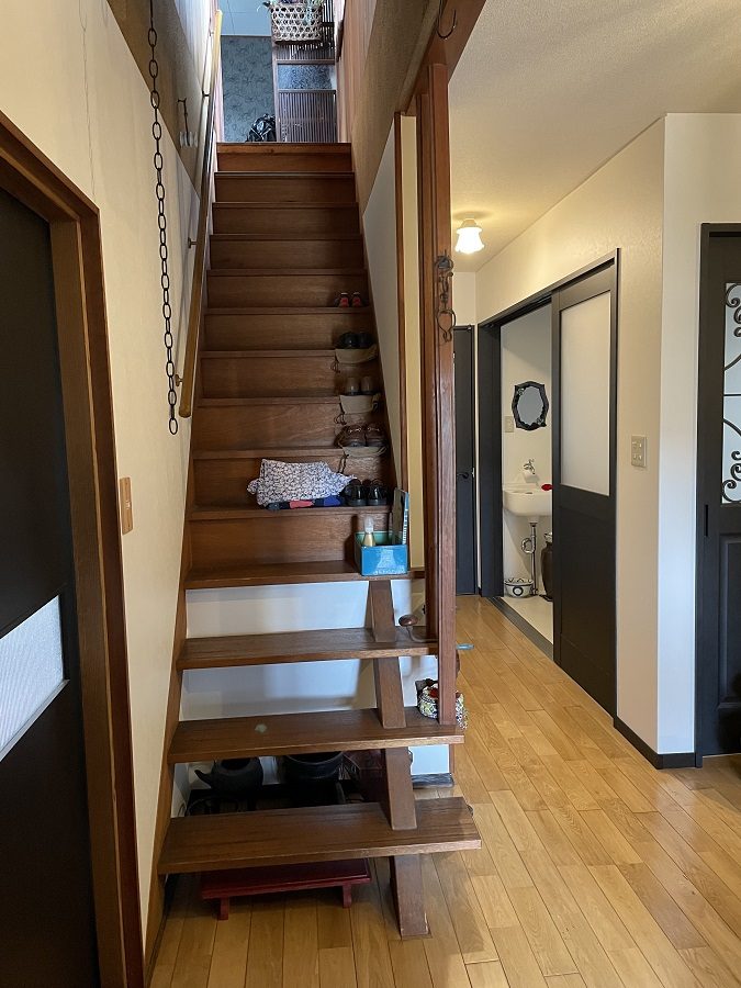 玄関入ってすぐの階段が丸見えなのがどうしても気になる。