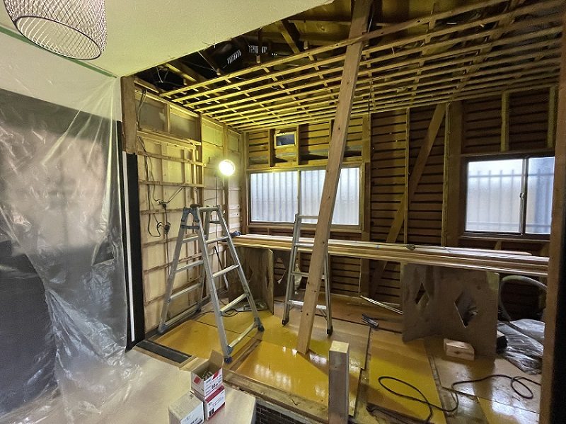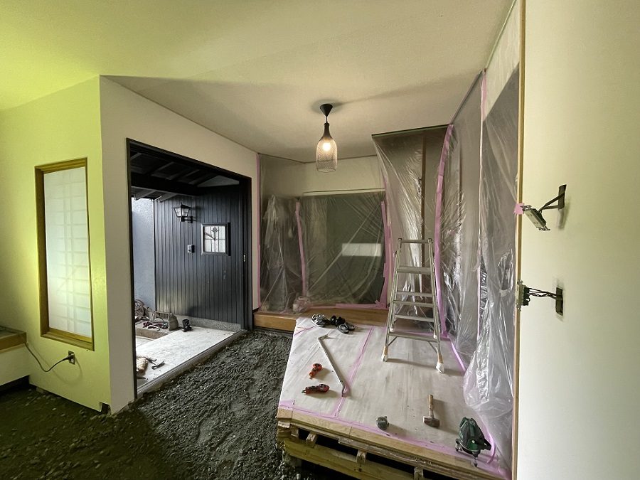 土間部分も間仕切の壁を撤去し、打ちっぱなしの土間へ。