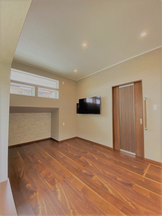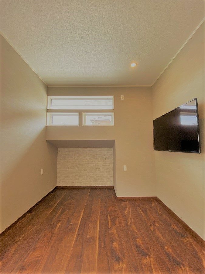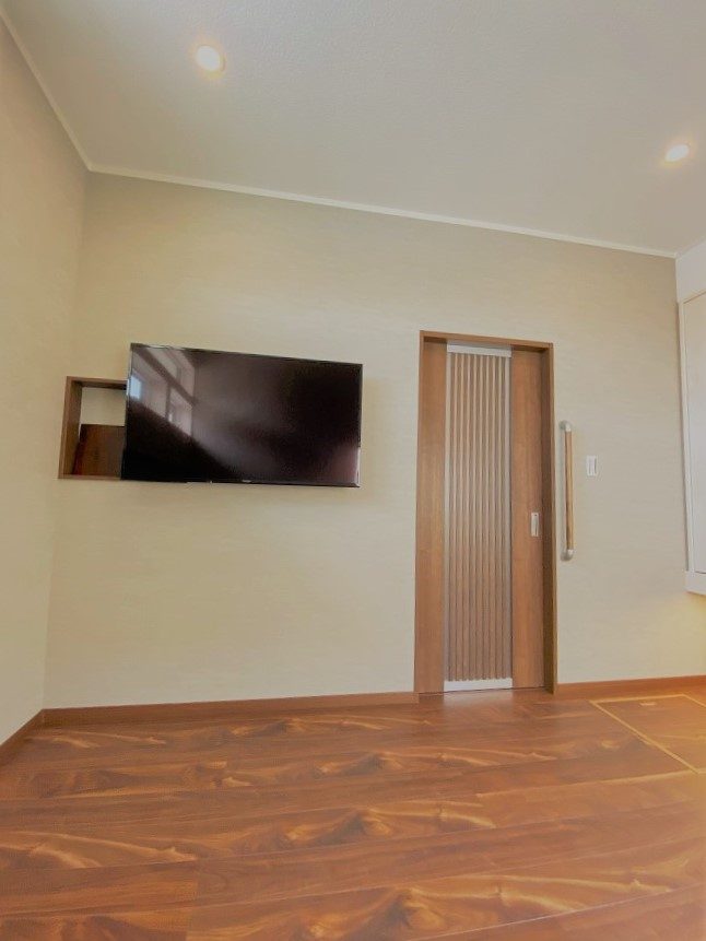 テレビを壁掛にしたりと、すっきりとした雰囲気だけど、遊び心もある素敵な洋間に大変身しました!!