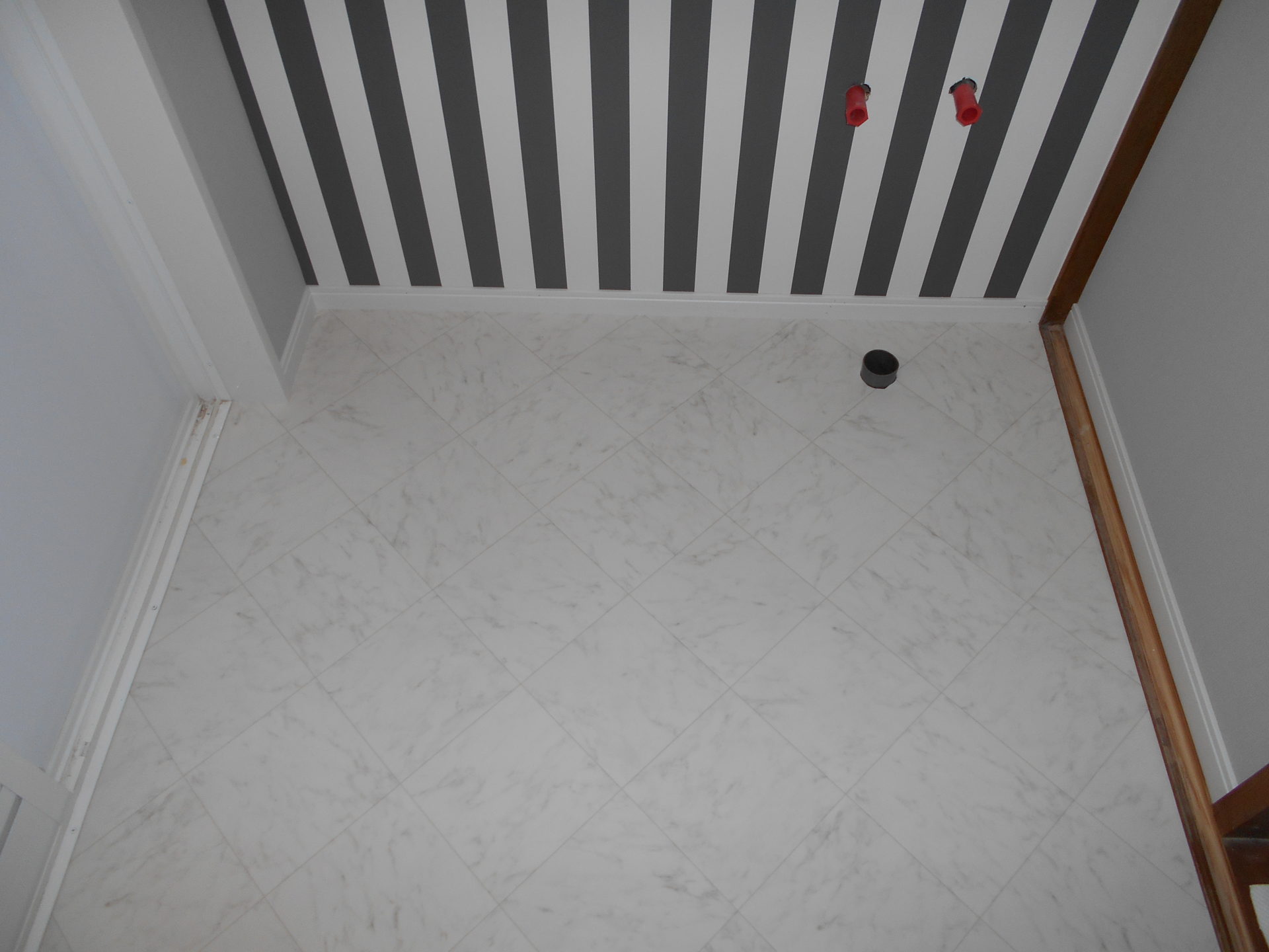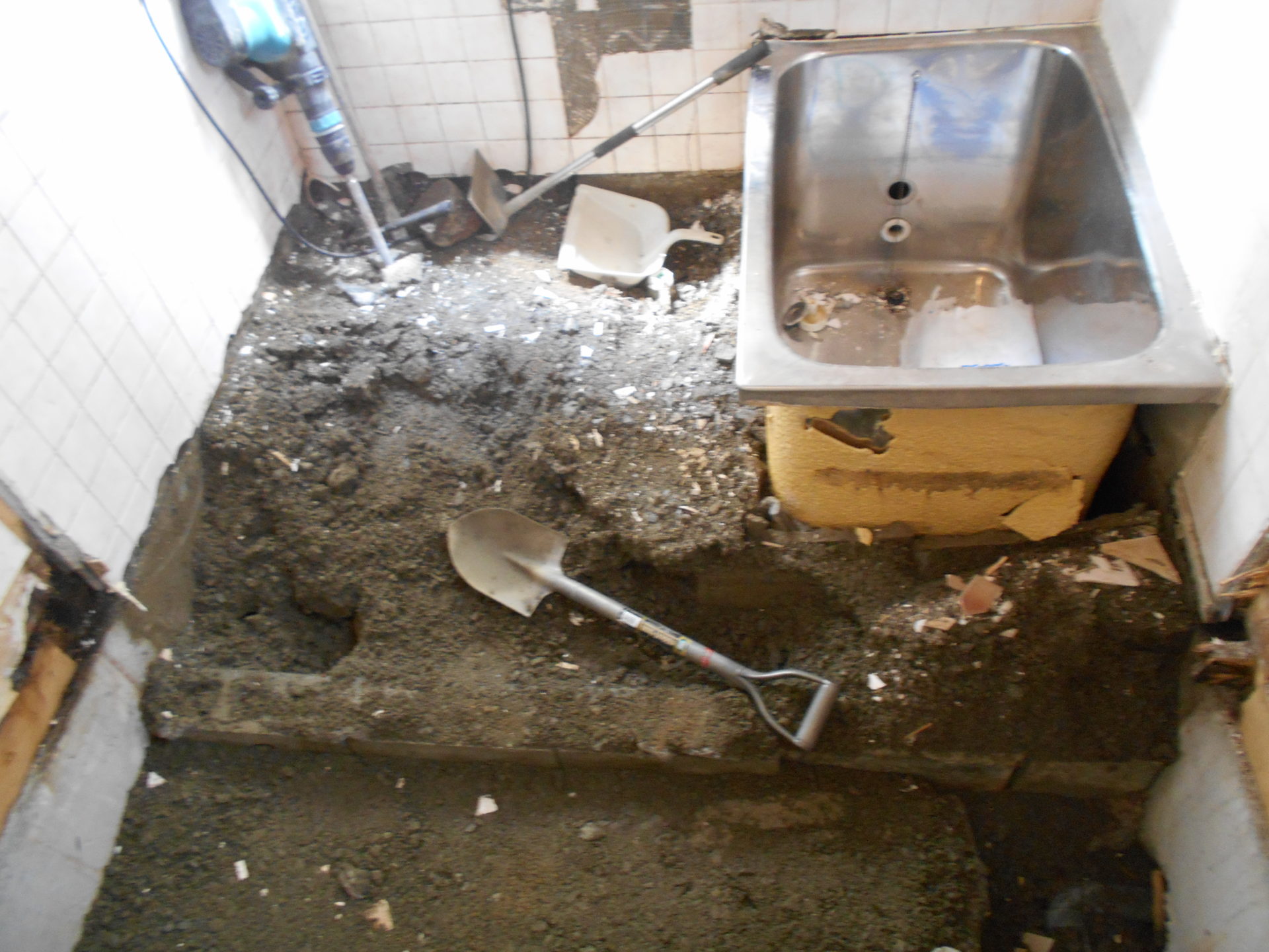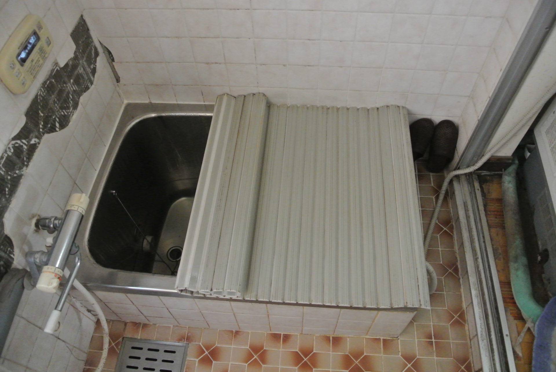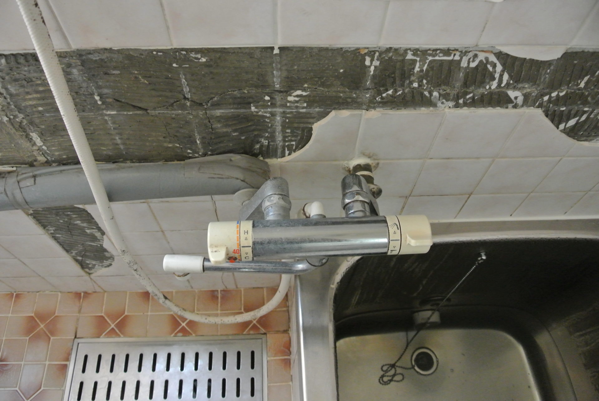 地震でお風呂のタイルにひびが入り、落ちていました。