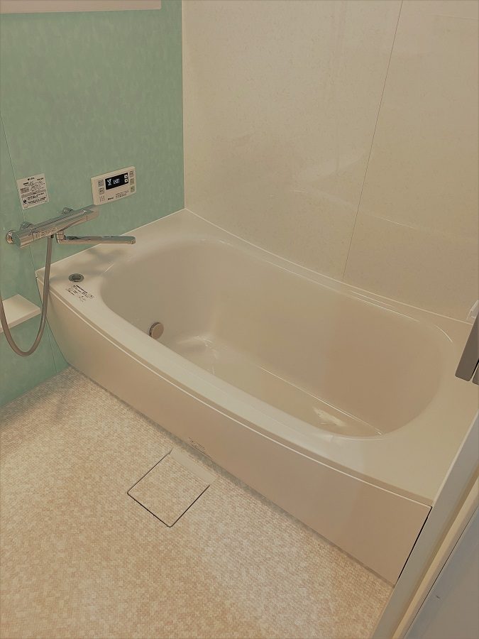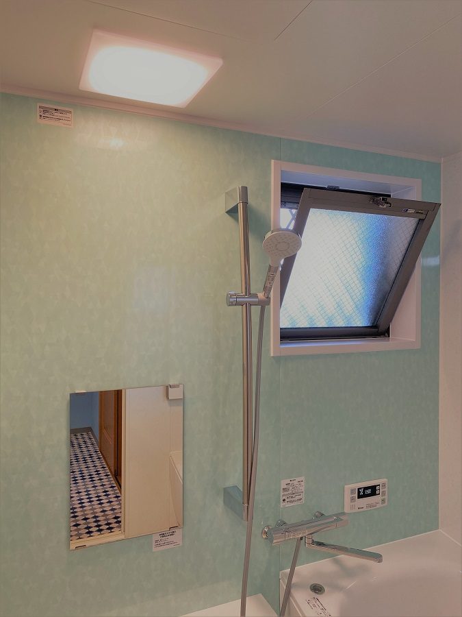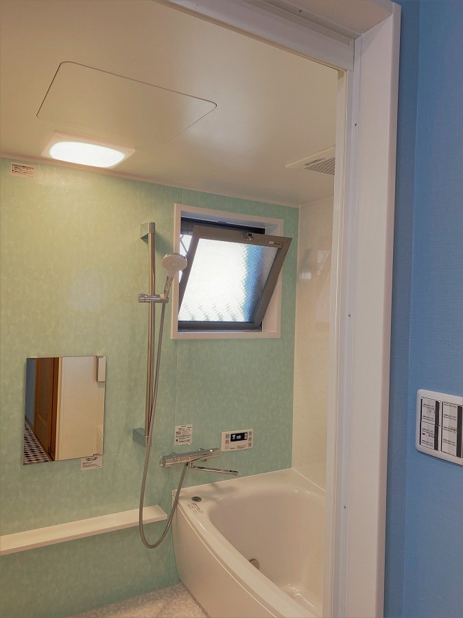お風呂はさわやかなブルーグリーンをアクセントに♪